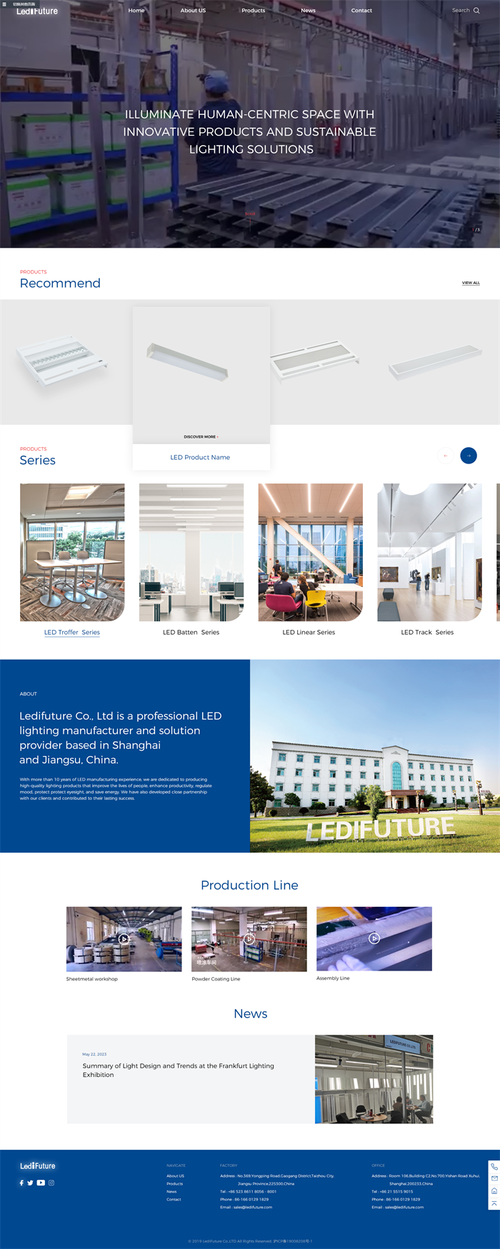 莱迪弗彻照明的业务增加国外市场,所以网站单独制作英文版本,主要向用户展示公司介绍、解决方案、产品系列以及B体育BSport等信息。